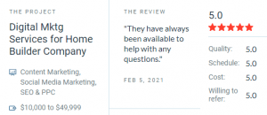 A recent client of ours left us their feedback on Clutch. The Design & Marketing Coordinator of a new home builder gave us a five-star rating.